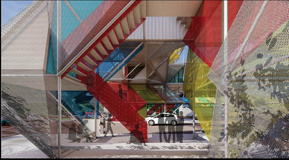 Inspired by the Magic Snake Cube toy, Shapership aims to mold new realities and bring positive changes to society. The structure reflects a student's transformative journey in school, and its combination of triangles symbolizes different student outcomes. Students can explore the inside space and view the structure from various angles.